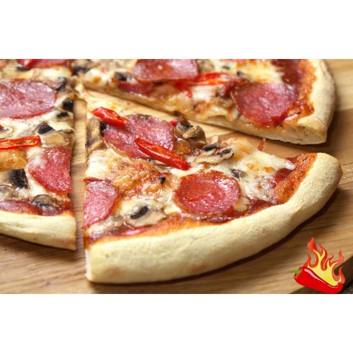 Піца Spicy – це вибір для тих, хто любить пікантні та гострі страви. Червоний соус, ковбаса папероні, печериці та гострий перець чилі створюють по-справжньому насичений і яскравий смак, який не залишить байдужим.